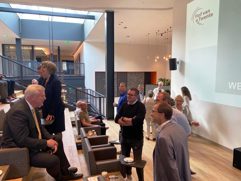 Gisteren bracht Commissaris van de Koning Heidema een bezoek aan gemeente Hof van Twente. Samen met kabinetschef Eiko Smid ging hij drie keer in gesprek: met het nieuwe college, met de nieuwe gemeenteraad en met inwoners die betrokken zijn bij Dynamiek Stokkum, Toekomstbestendig Hengevelde en Duurzaam Initiatief MarkeloNoord. De Commissaris vond het een informatieve middag in een zelfbewuste gemeente met inspirerende inwonersinitiatieven. Burgemeester Nauta nodige hem meteen uit voor een volgend bezoek: ‘Verget ‘t wierkom’n nich!’